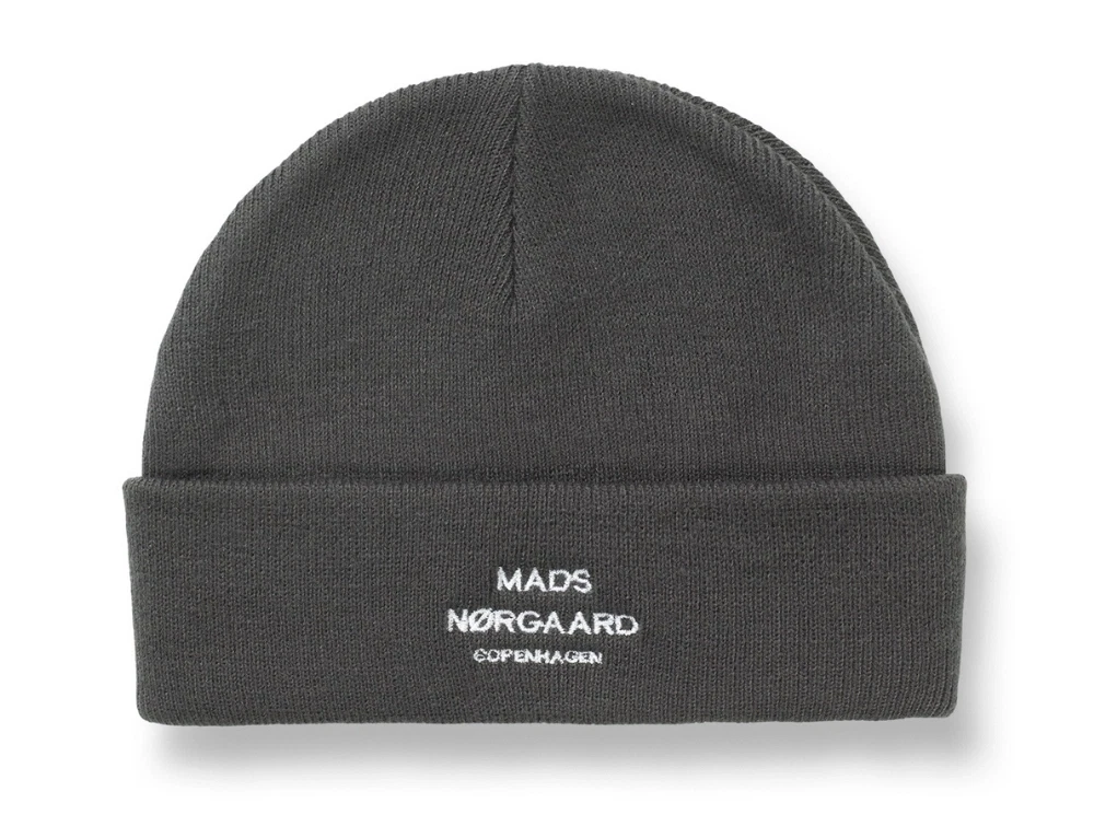 Hue i mørkegrå (asphalt) fra Mads Nørgaard med broderet logo foran.