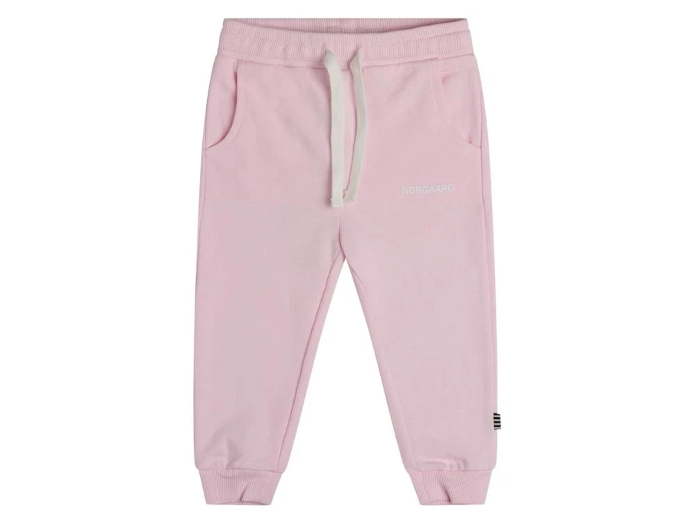 Sweatpants i lys rosa (pink) fra Mads Nørgaard med bindebånd og ribkanter.