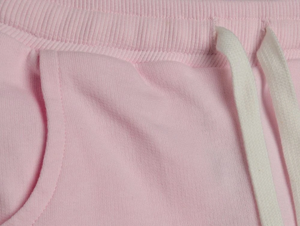 Mads Nørgaard sweatpants pink med bindebånd og lommer forfraMads Nørgaard sweatpants pink med baglomme bagfraDetalje af bindebånd og lomme på Mads Nørgaard sweatpants i pink