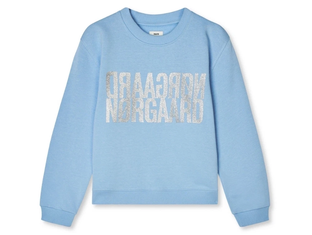 Mads Nørgaard sweatshirt i lyseblå med sølv glimmer logo