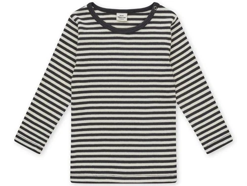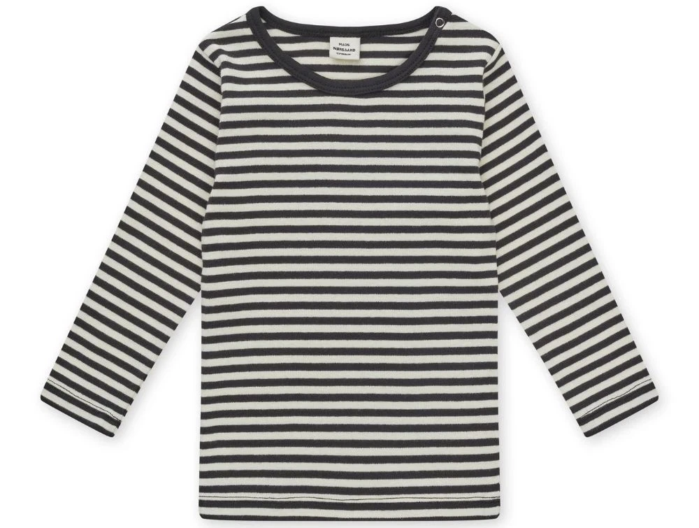 Langærmet t-shirt i sort (black) og råhvid (vanilla ice) stribet design fra Mads Nørgaard.