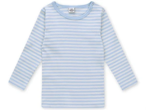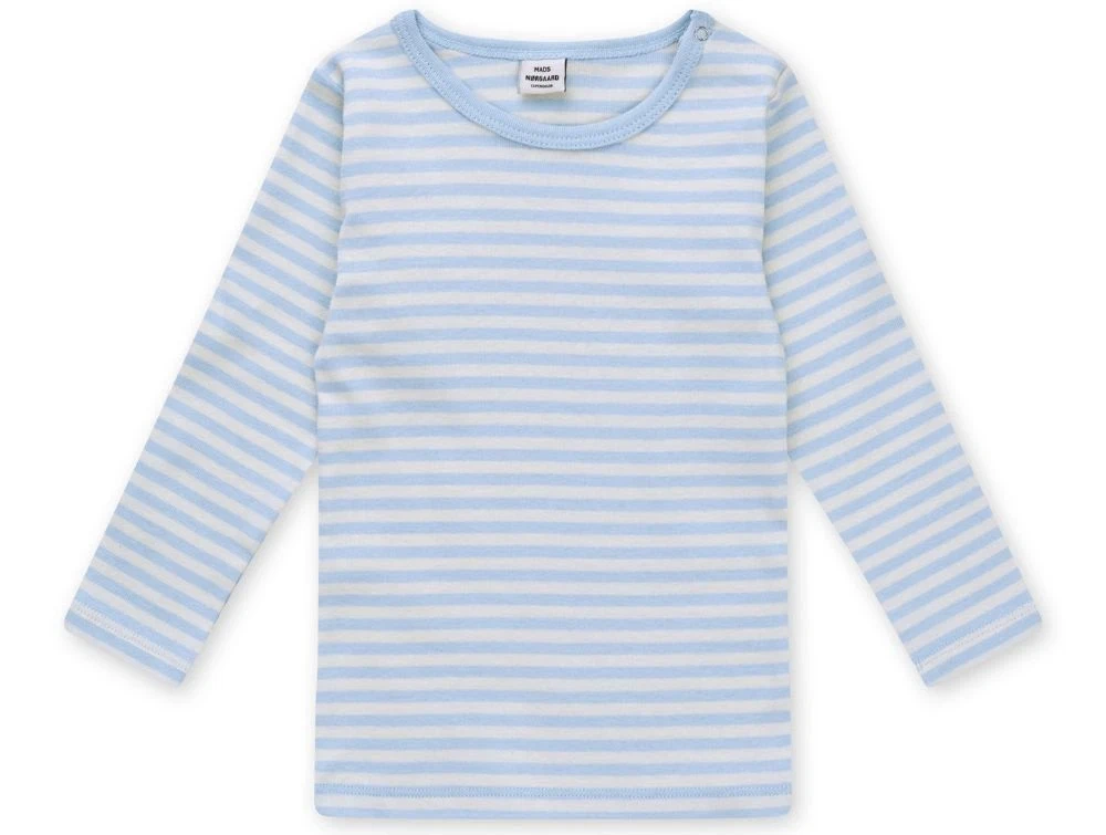 Langærmet t-shirt i lyseblå (cashmere blue) og råhvide (vanilla ice) striber fra Mads Nørgaard.