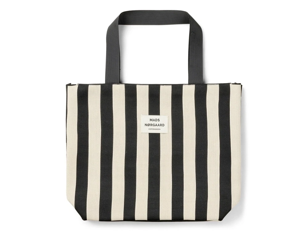 Tote bag i sort og hvid stribet design (black) fra Mads Nørgaard med kraftig struktur og logo foran.