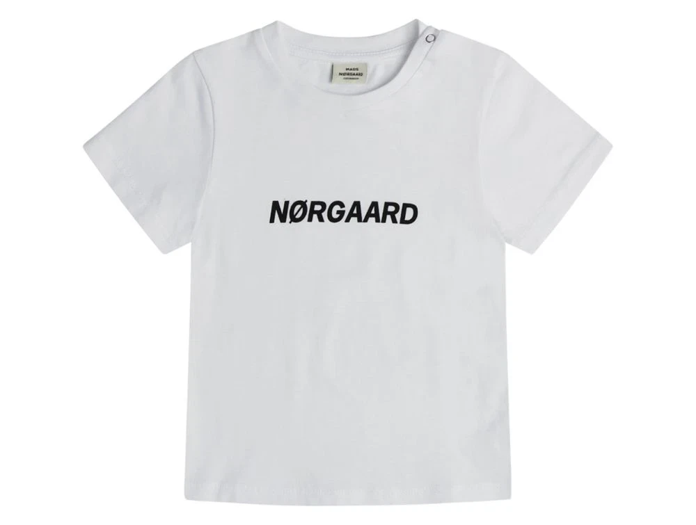T-shirt i hvid (white) med sort logo fra Mads Nørgaard.