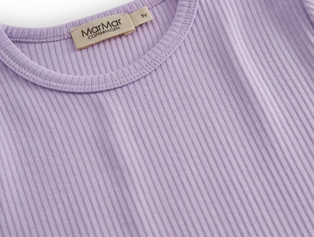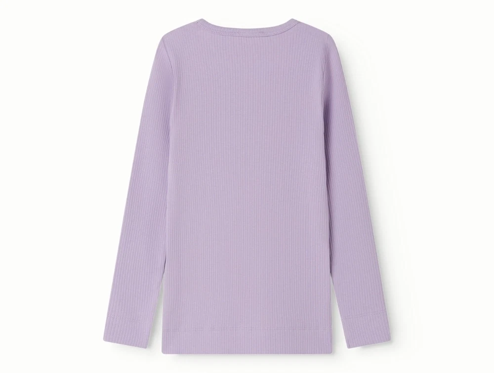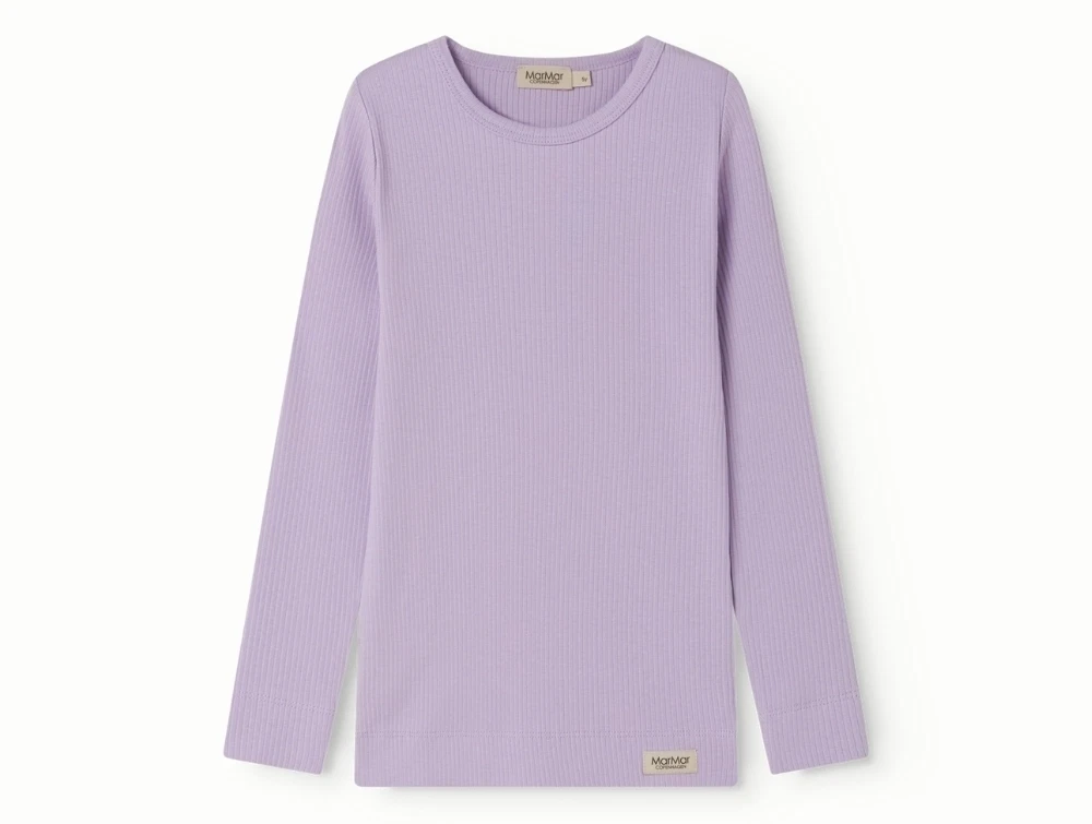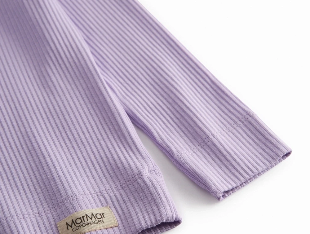 MarMar bluse i rib i lilacsPige i klædt MarMar ribbluse i lilac nuance med rund halsMarMar langaermet ribbluse i lilacsMarMar ribbluse med fine ribdetaljer i lilacsMarMar ribbluse set bagfra i lilacs