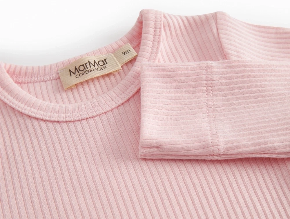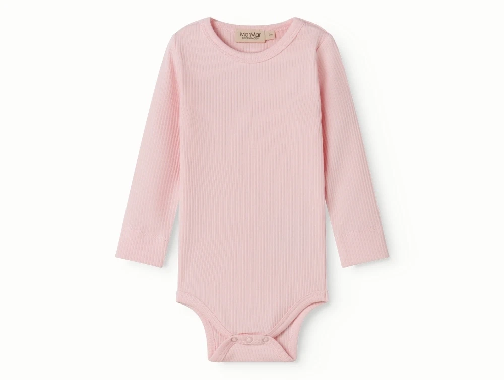 Langærmet body i lyserød nuance (rose touch) fra MarMar Copenhagen fremstillet i blød ribkvalitet.