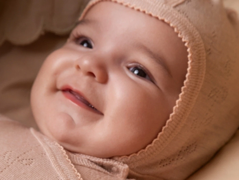 Huen har en tætsiddende pasform og lukkes under hagen med praktiske trykknapper. Den har et smukt hulmønster samt en delikat tungekant, som giver et let og feminint design. MarMar Copenhagen hoody hjelm i uld pointelle er ideel som inderste lag og hjælper med at holde barnet varmt på kølige dage.