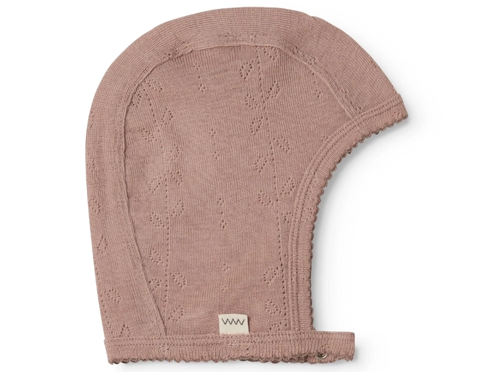 MarMar Copenhagen hjelm i burnt rose uld pointelle vist på barnMarMar Copenhagen hjelm i burnt rose uld pointelle set fra sidenMarMar Copenhagen hjelm i burnt rose uld pointelle set bagfraMarMar Copenhagen hjelm i burnt rose uld pointelle med syningsdetaljeMarMar Copenhagen hjelm i burnt rose uld pointelle med lille logomærke