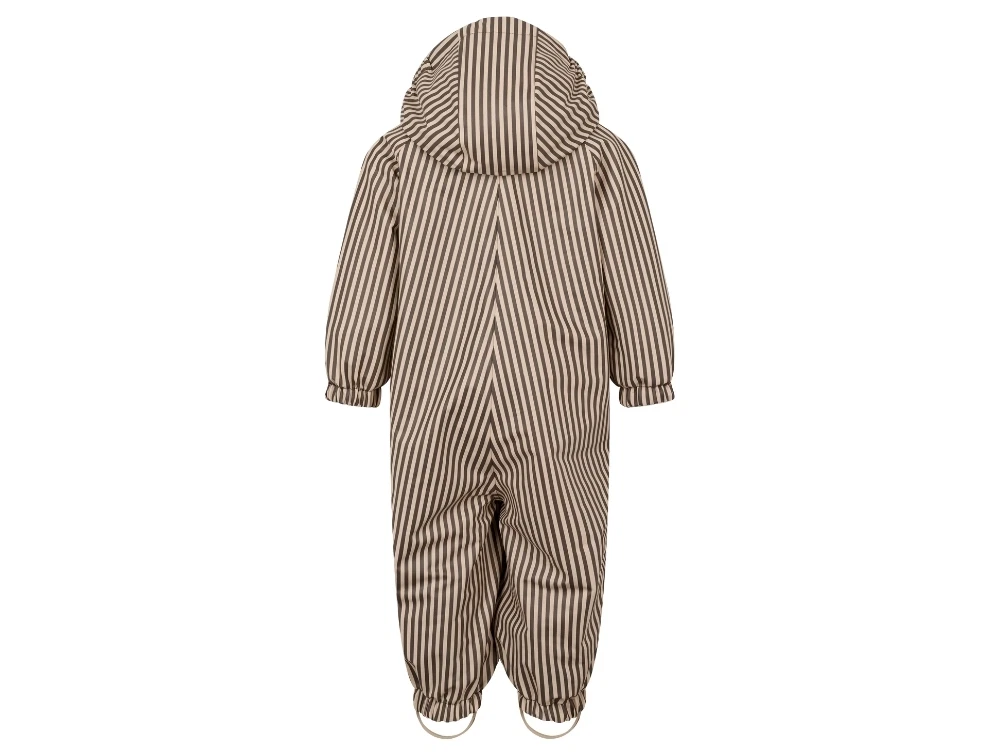 Regndragt i brun nuance med mørke lodrette striber fra MarMar Copenhagen.