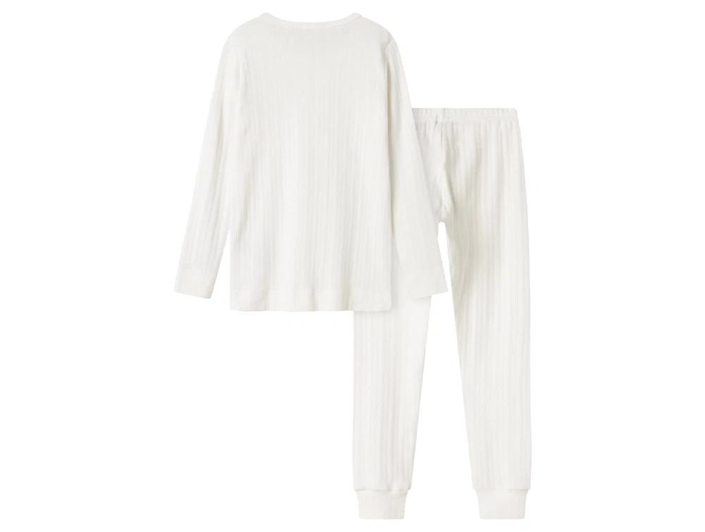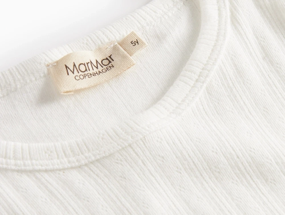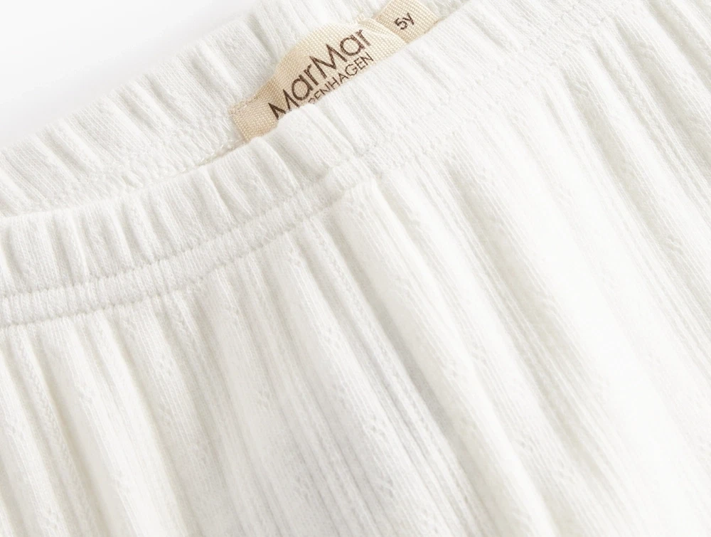 Nattøjssæt i hvid nuance (gentle white) fra MarMar Copenhagen. Sættet har et fint hulmønster og blød kvalitet.