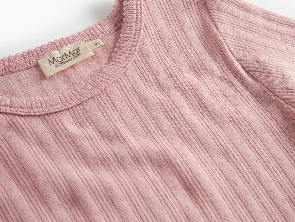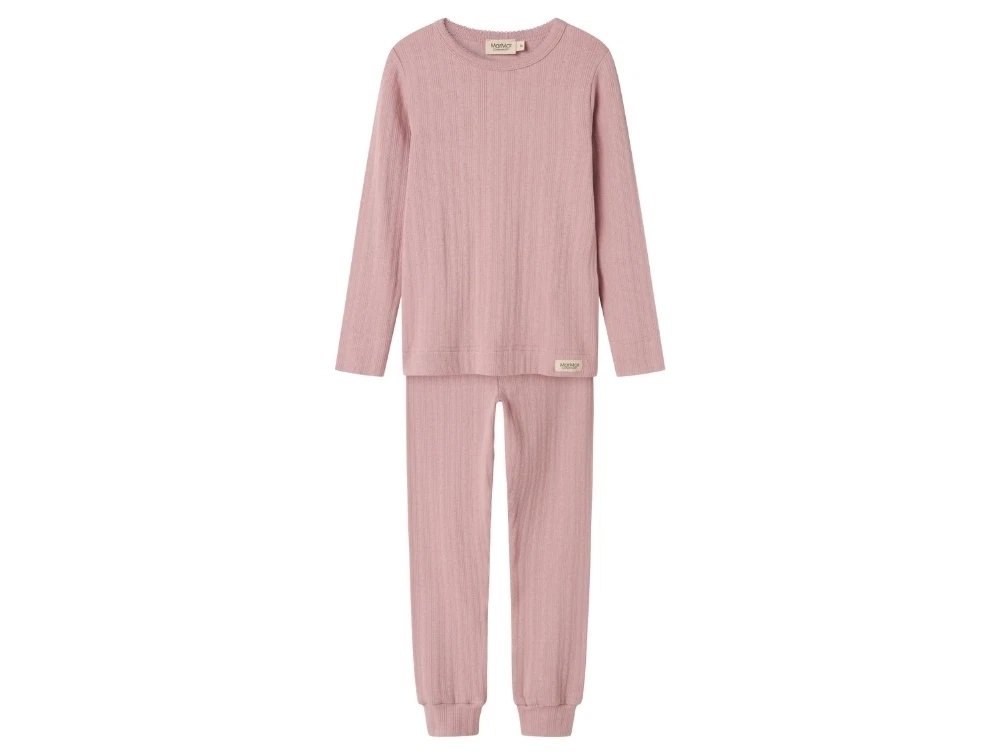 Nattøjssæt i rosa nuance (soft berry) fra MarMar Copenhagen. Sættet har et fint hulmønster og blød kvalitet.