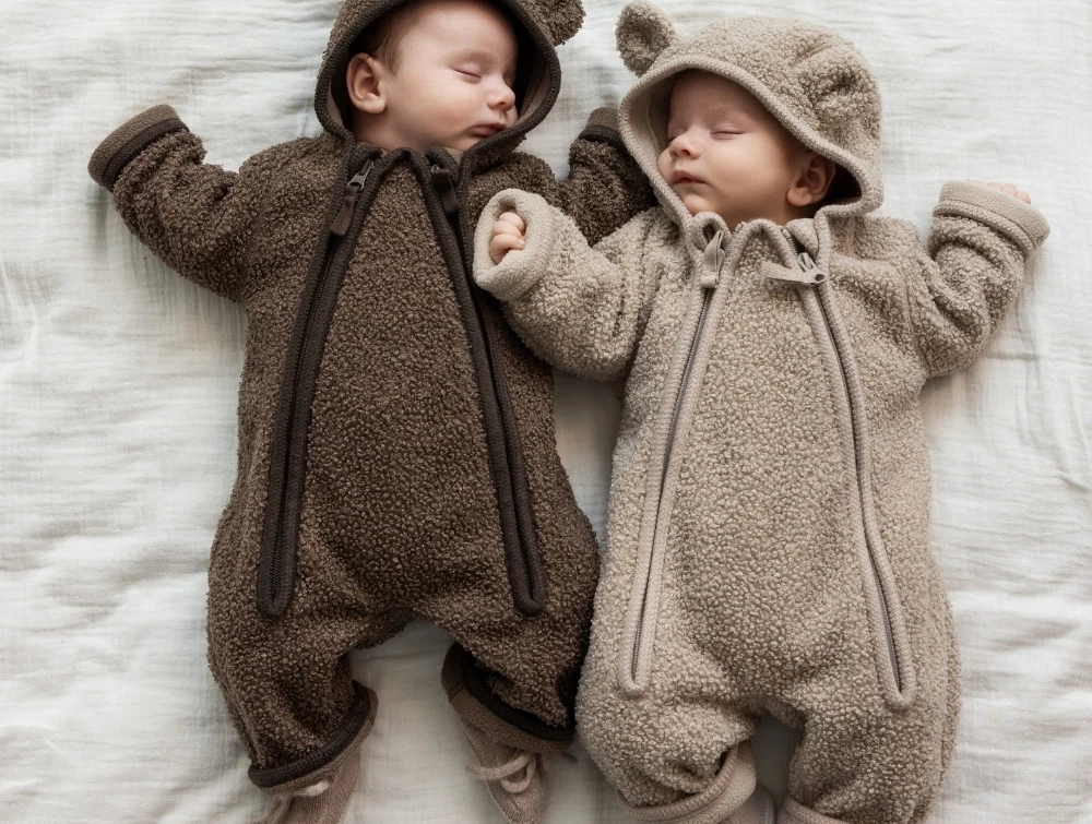 Dragten er fremstillet i bonded teddy med blød fleece indvendigt og en krøllet, vamset overflade. Kvaliteten er både let, varm og OEKO-TEX® certificeret. Et ideelt valg til komfortable og praktiske udendørsdage med de mindste.