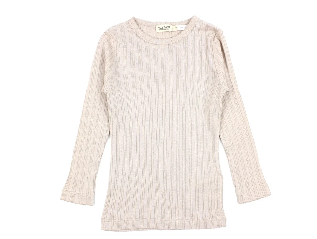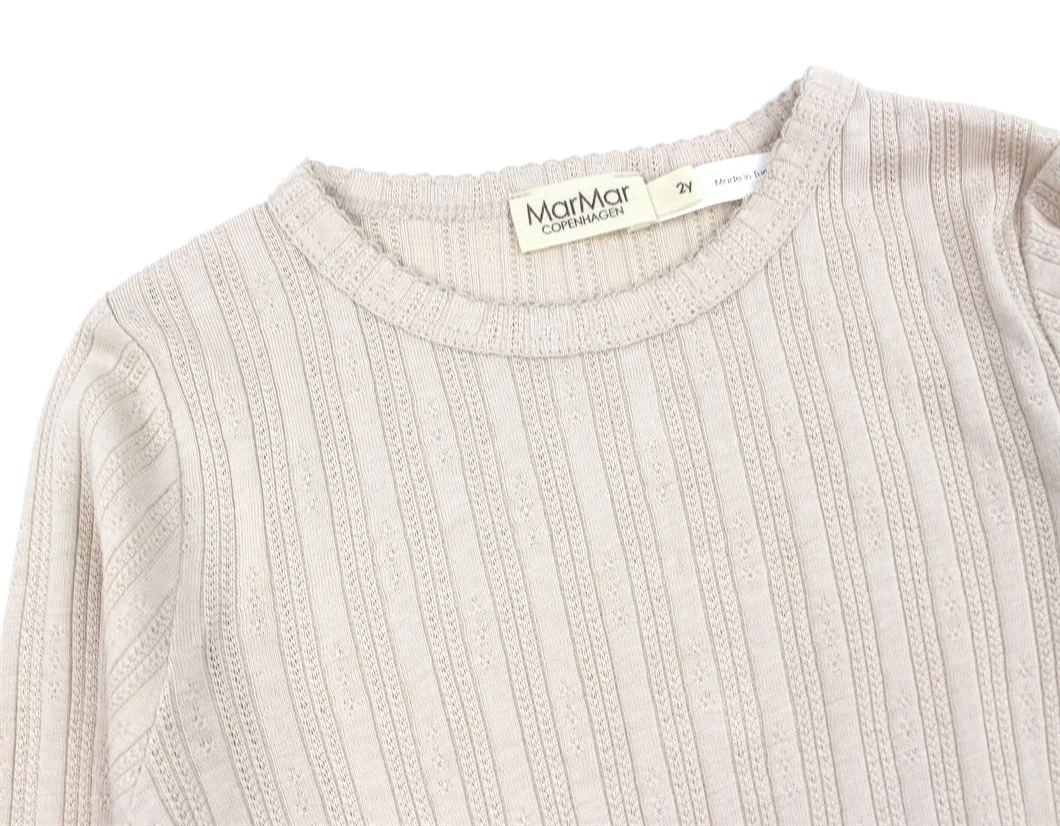 Langærmet t-shirt i pointelle rib i farven cream taupe fra MarMar Copenhagen.