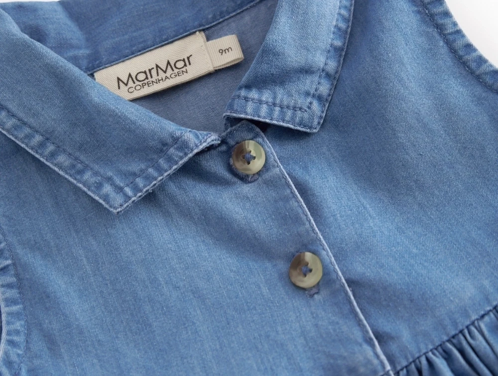 Kjole i blå denim nuance (blue denim) fra MarMar Copenhagen fremstillet i let bomuldskvalitet.