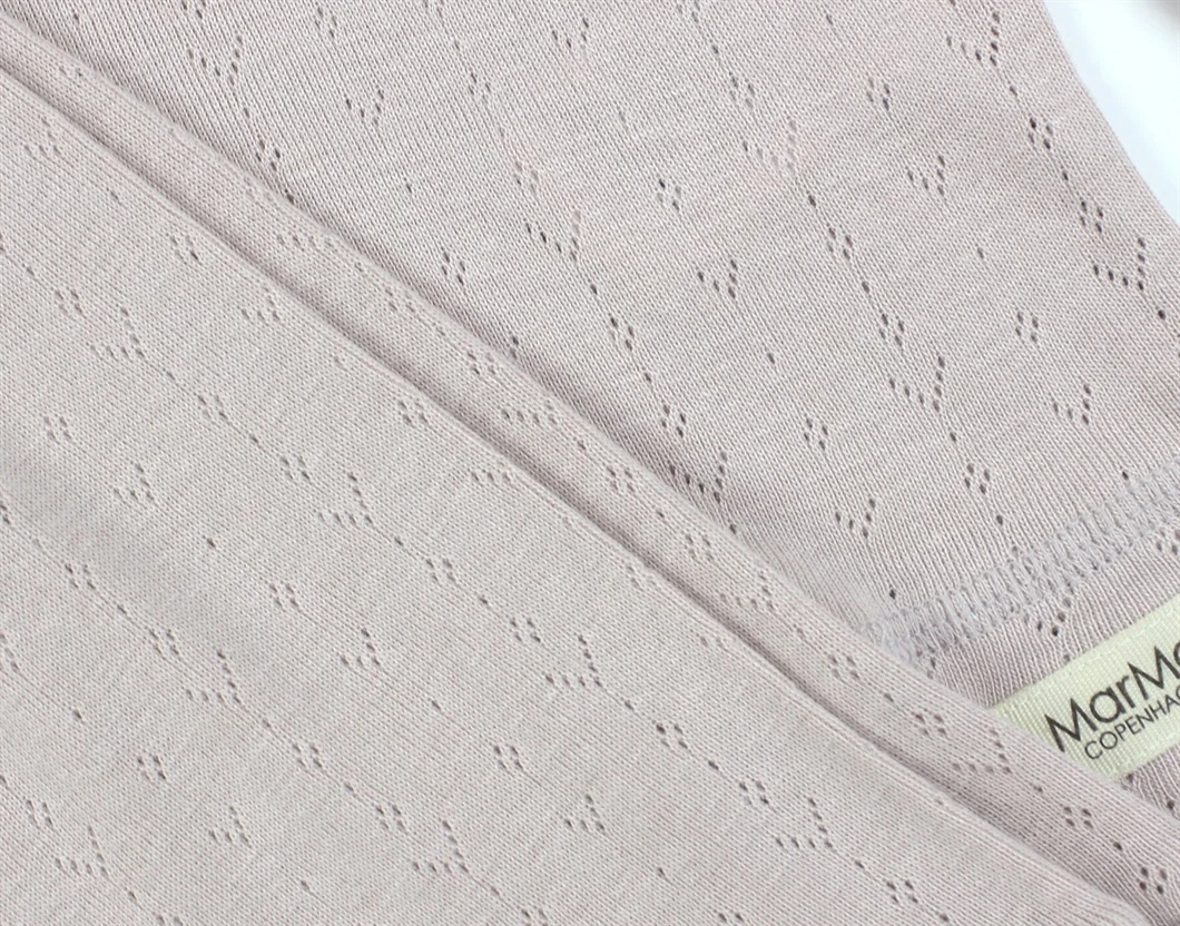 Sættet har pointelle hulmønster og er produceret i 50% økologisk bomuld og 50% modal.