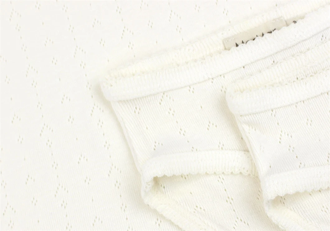 Sættet har pointelle hulmønster og er produceret i 50% økologisk bomuld og 50% modal.