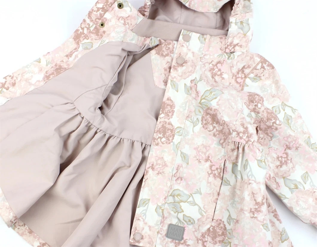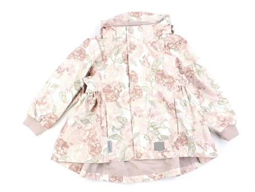 Yndig overgangsjakke med blomsterprint fra MarMar. Jakken har en aftagelig hætte med trykknapper.