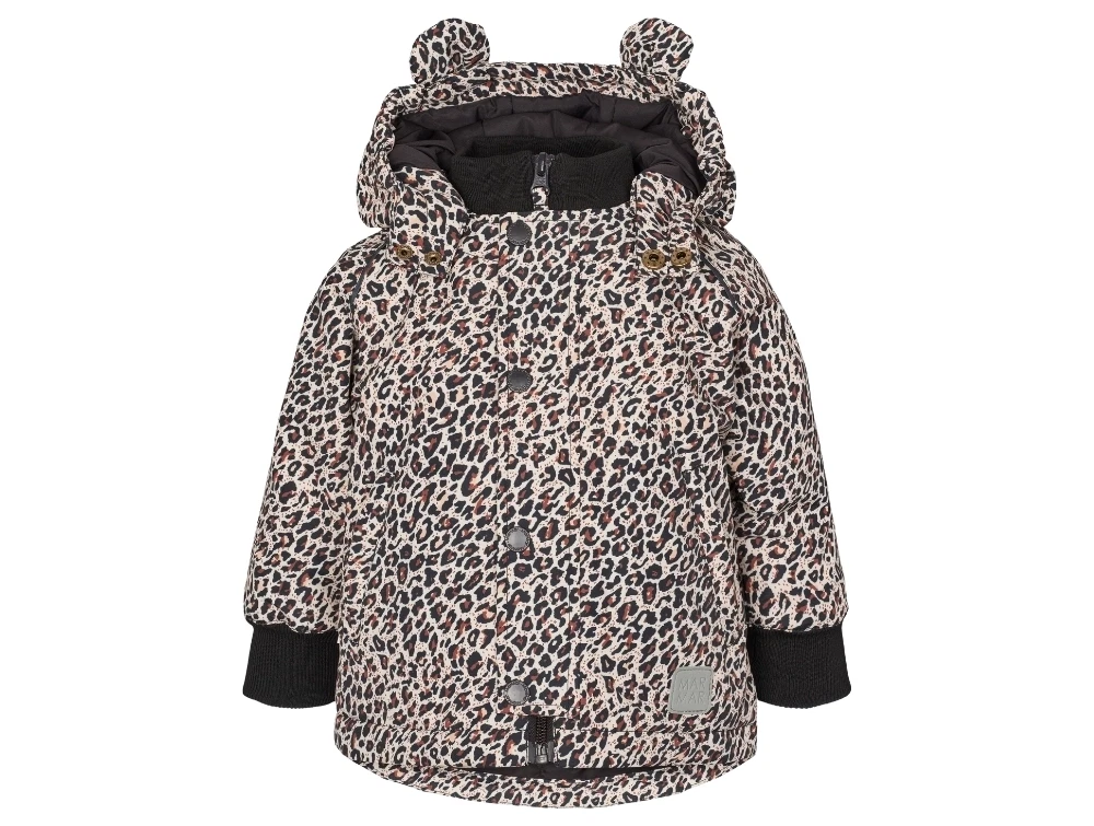 Vinterjakke med leopard print fra MarMar i et praktisk design med blød hætte og søde ører.