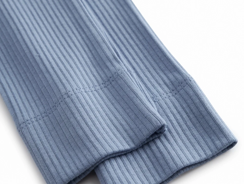 Ribstrikket kvalitet med blød overflade og god stræk, der giver en behagelig pasform og god bevægelsesfrihed i hverdagen.