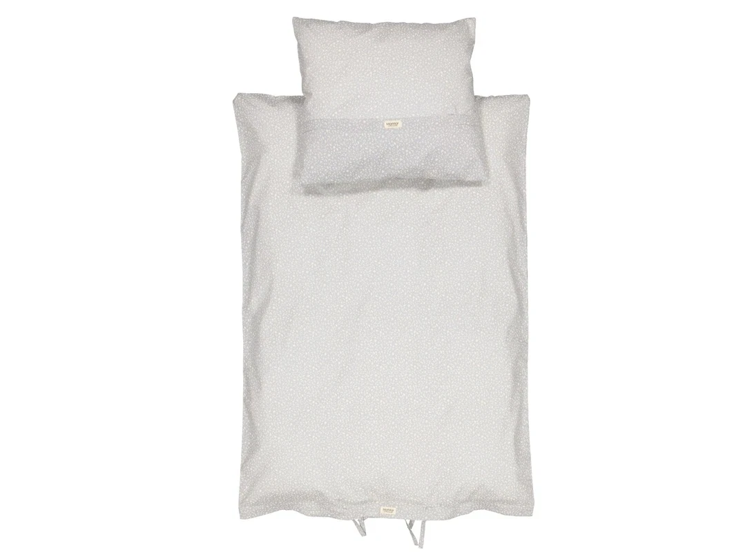 Sengetøjet har en let og sprød bomulds kvalitet, der giver en behagelig søvnoplevelse. Med dette sengetøj kan dit barn nyde en rolig og komfortabel nattesøvn omgivet af naturlige materialer, der er skånsomme mod huden. Sengetøjet er designet med en dyne, der lukkes med bindebånd i fodenden. Sættet leveres i et matchende stofnet.