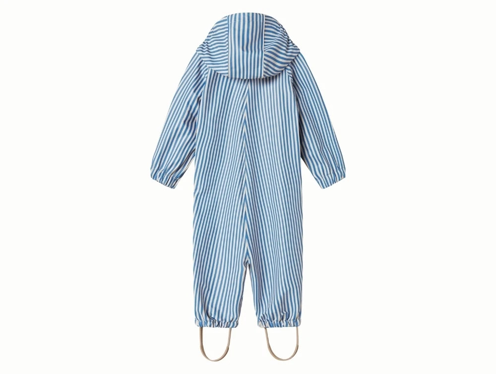 MarMar regndragt i blue stripe med hætteMarMar Orion regndragt i blue stripe på babyMarMar regndragt med gummistropper under fødderne i blue stripeMarMar regndragt med lynlås og trykknapper i blue stripeMarMar regndragt set bagfra i blue stripe