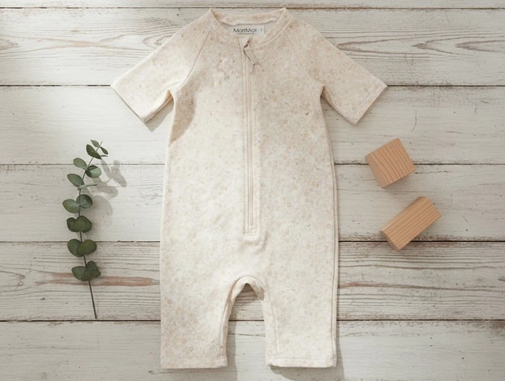 Denne badedragt med korte ærmer og ben har lynlåslukning og er et ideelt valg til at holde dit barn beskyttet og komfortabelt under strand- eller poolaktiviteter.