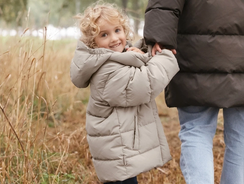 Jakke med aftagelig hætte og praktiske lommer i siderne. Den lukkes med lynlås og trykknapper foran og har ribkant ved ærmerne. Jakken har en høj krave, der beskytter godt mod vinden, og en blød, fyldig fornemmelse, som gør den velegnet til kolde dage.