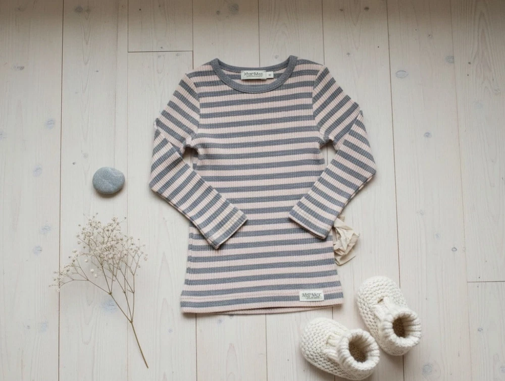 Rosa/grå-stribet t-shirt med lange ærmer fra MarMar.