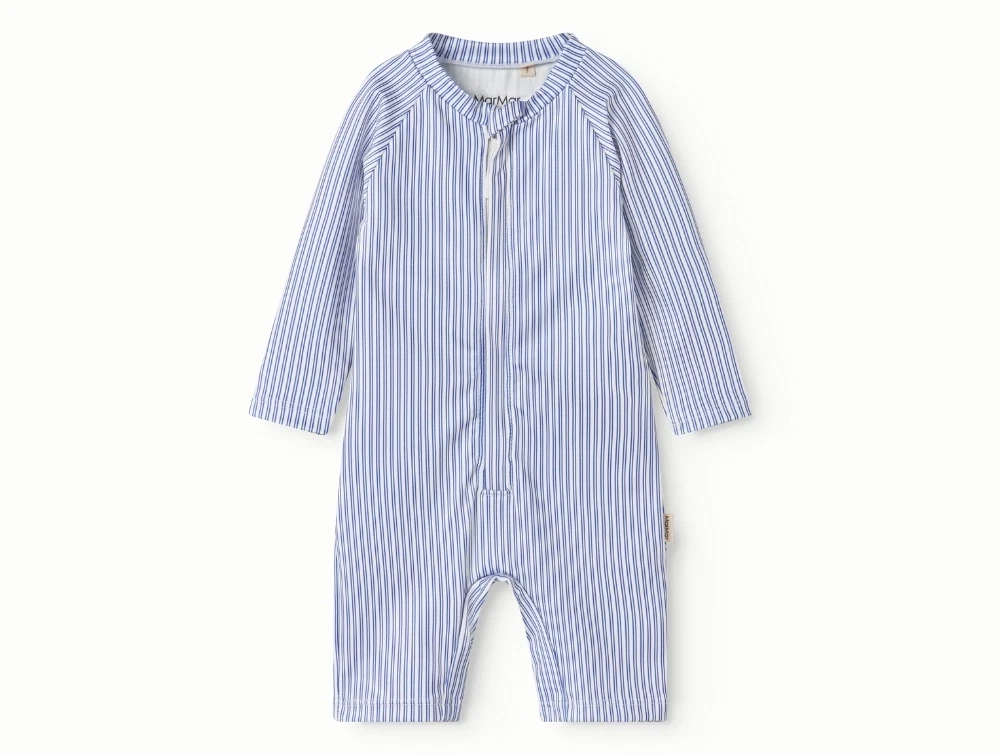 MarMar Swal baby badedragt bolich blue med striber og lynlås