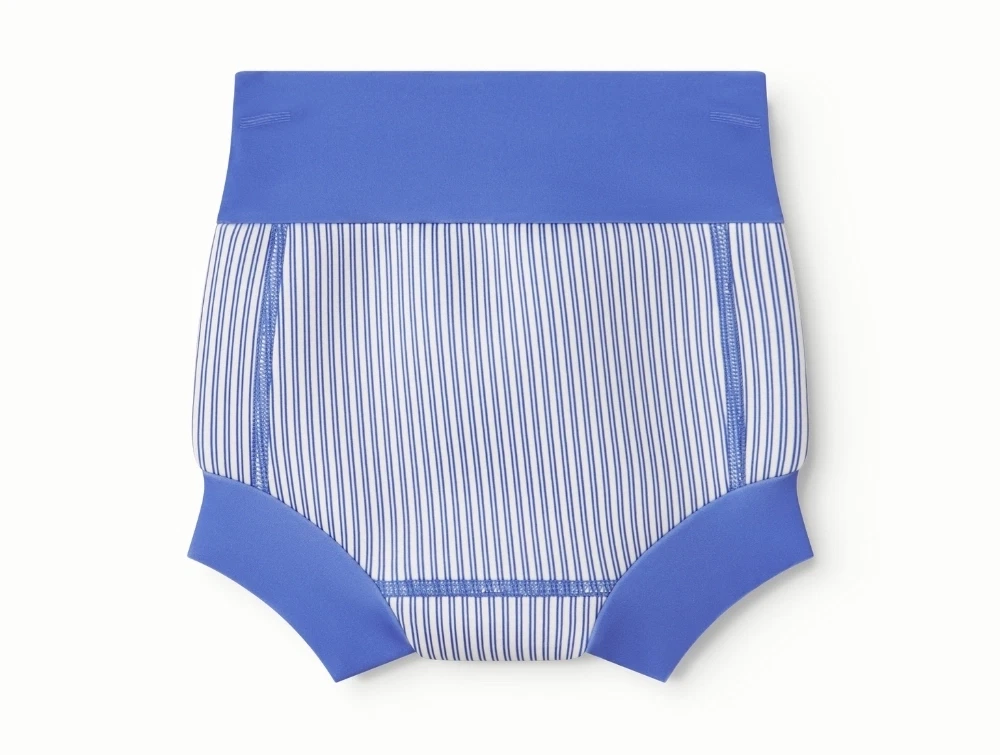 Badebukser til baby i råhvid nuance med smalle blå striber (bolich blue stripe) fra MarMar Copenhagen.