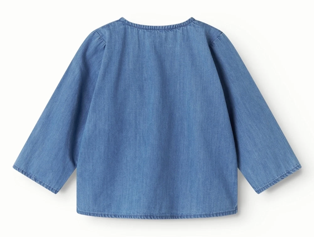 Dreng iklædt MarMar skjorte med knapper i blue denimMarMar skjorte i blue denim med brystlommeMarMar skjorte med knapper i blue denimMarMar skjorte set bagfra i blue denim