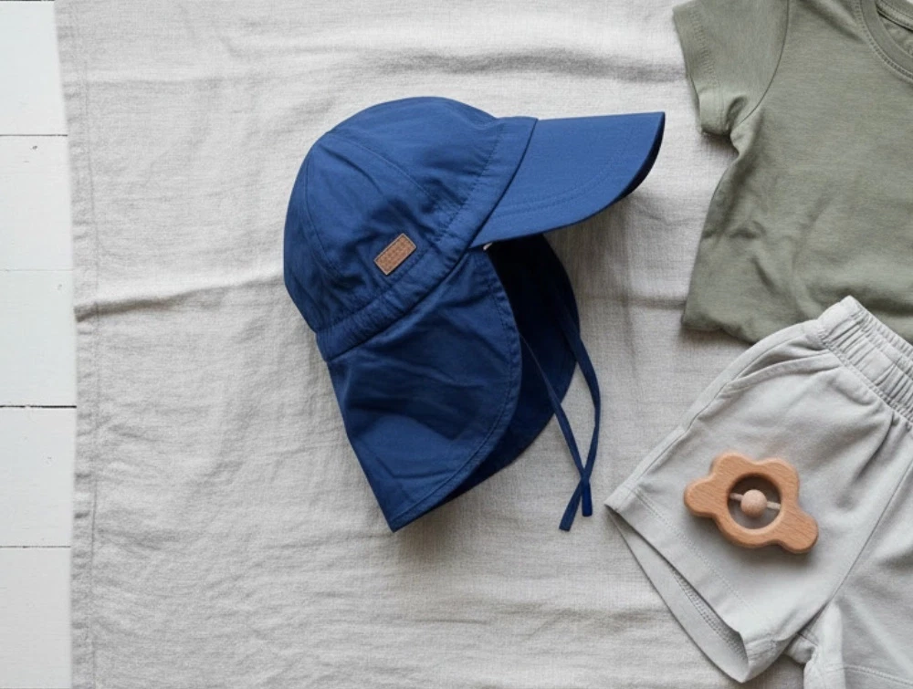 Den praktiske solhat – også kaldet legionærhat – har UV30-beskyttelse og dækker både ansigt og nakke på solrige dage.