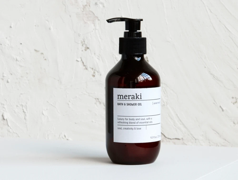 Mere information om Meraki brown velvet mood bath & shower oil 275ml