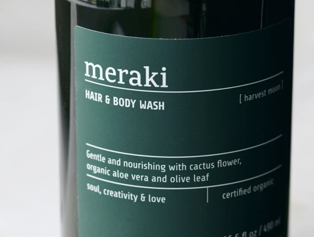 Mere information om Meraki green harvest moon hair & body wash 490ml