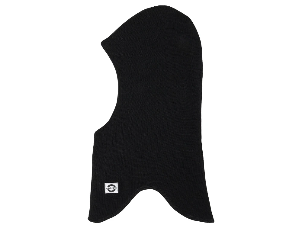 Mikk-Line uld elefanthue i sort lavet med dobbelt lag, vindstop og blødt bomuldsfoer. Elefanthuen har en enkel, ensfarvet stil og er lavet i en blanding af uld og akryl.