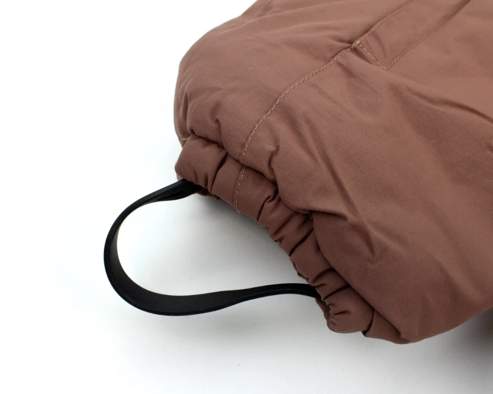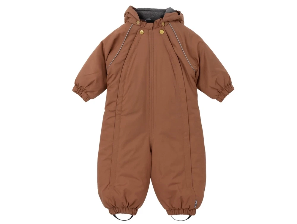 Flyverdragt i farven nutmeg fra Mikk-line. Flyverdragten har en aftagelig hætte med trykknapper.