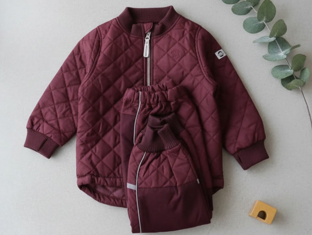 Termosæt med jakke og bukser i farven fudge fra Mikk-line.