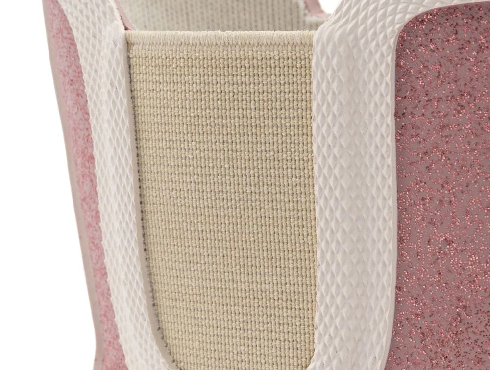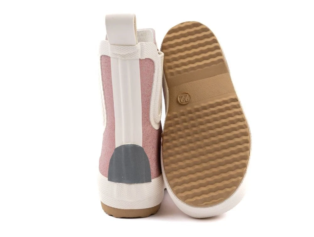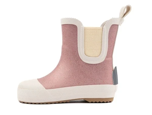 Korte gummistøvler i rosa med glimmer (woodrose) i naturgummi fra Mikk-Line.