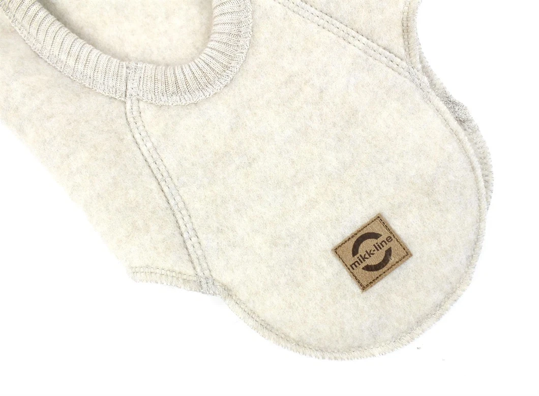 Mere information om Mikk-line melange offwhite elefanthue merinould med pom pom'er