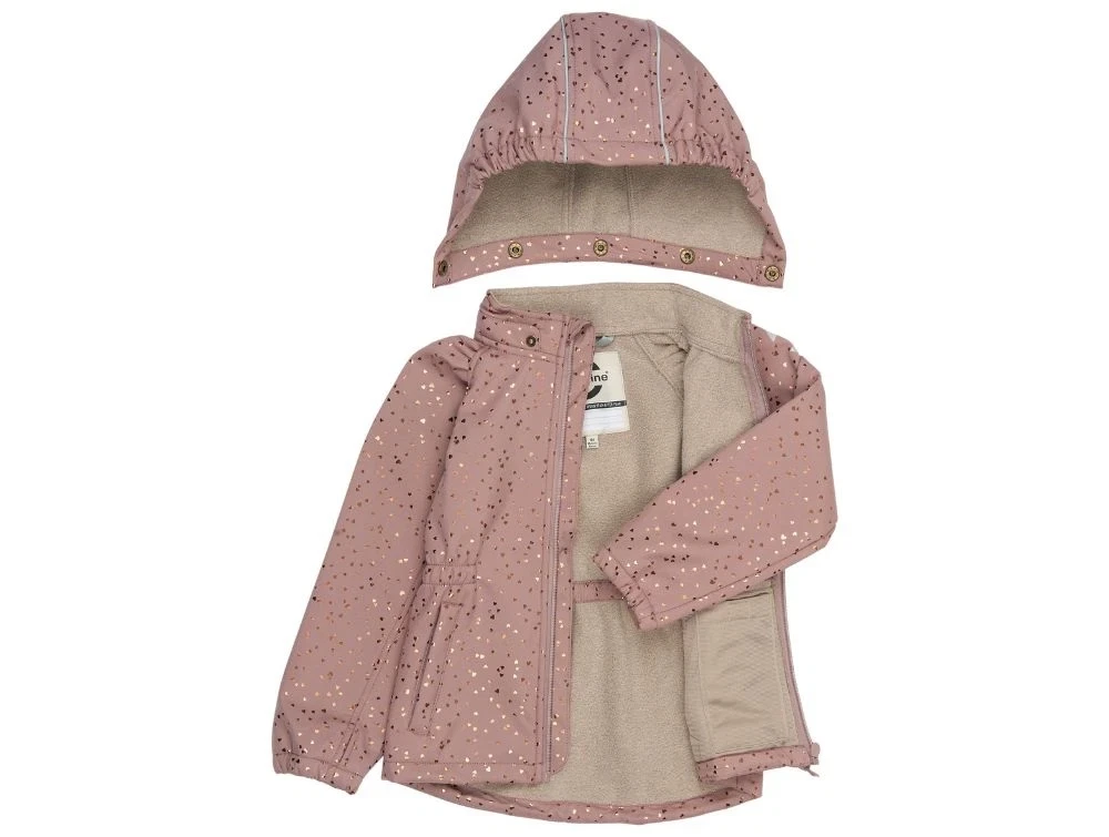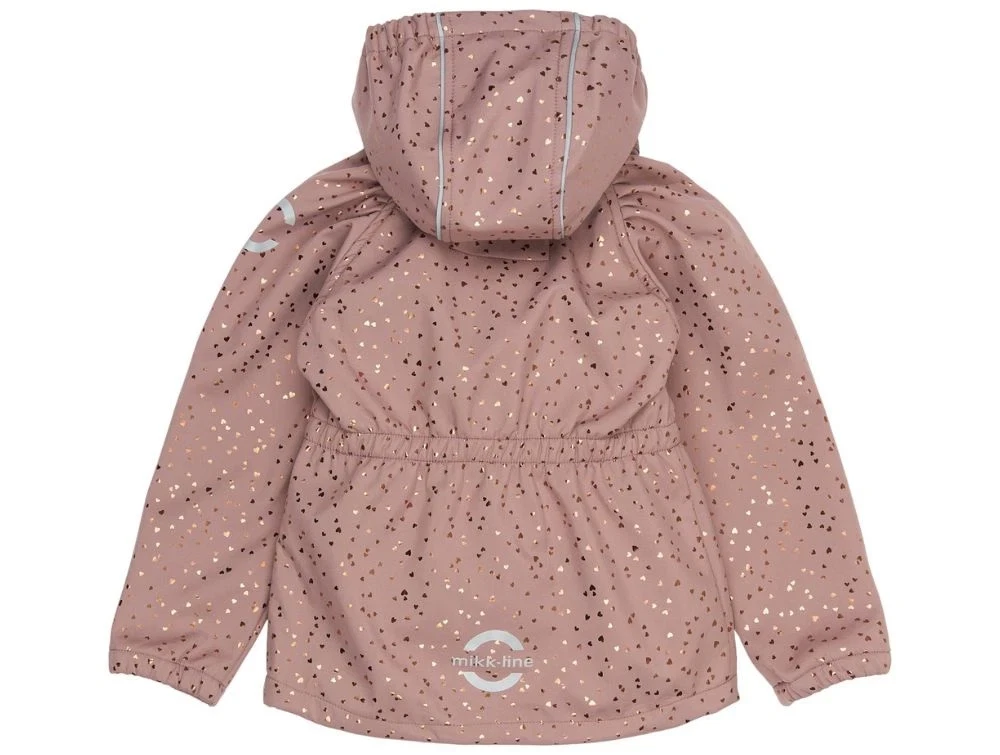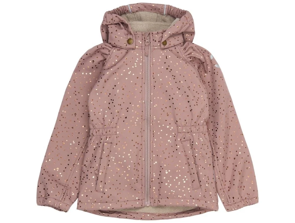 Softshell overgangsjakke i farven twilight mauve med hjerte-glitterprint fra Mikk-Line.