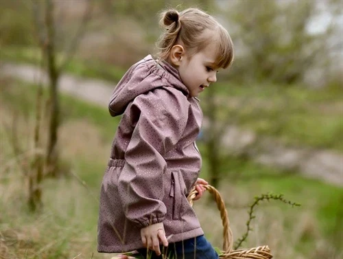 Mere information om Mikk-line overgangsjakke softshell twilight mauve med glitterprint
