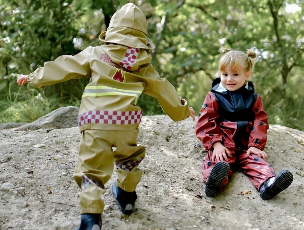 Mikk-line regnsæt med brandmandsdesign og seler