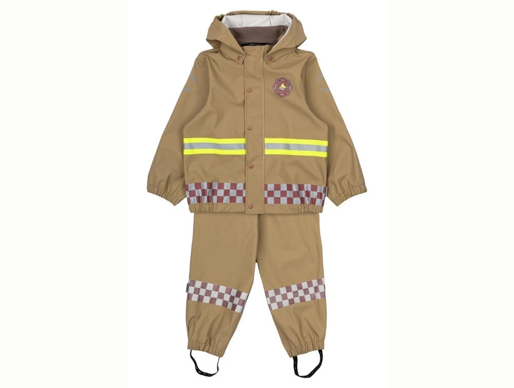 Regnsæt i lys brun nuance (kelp) fra Mikk-line med sejt brandmandsdesign.