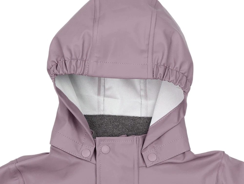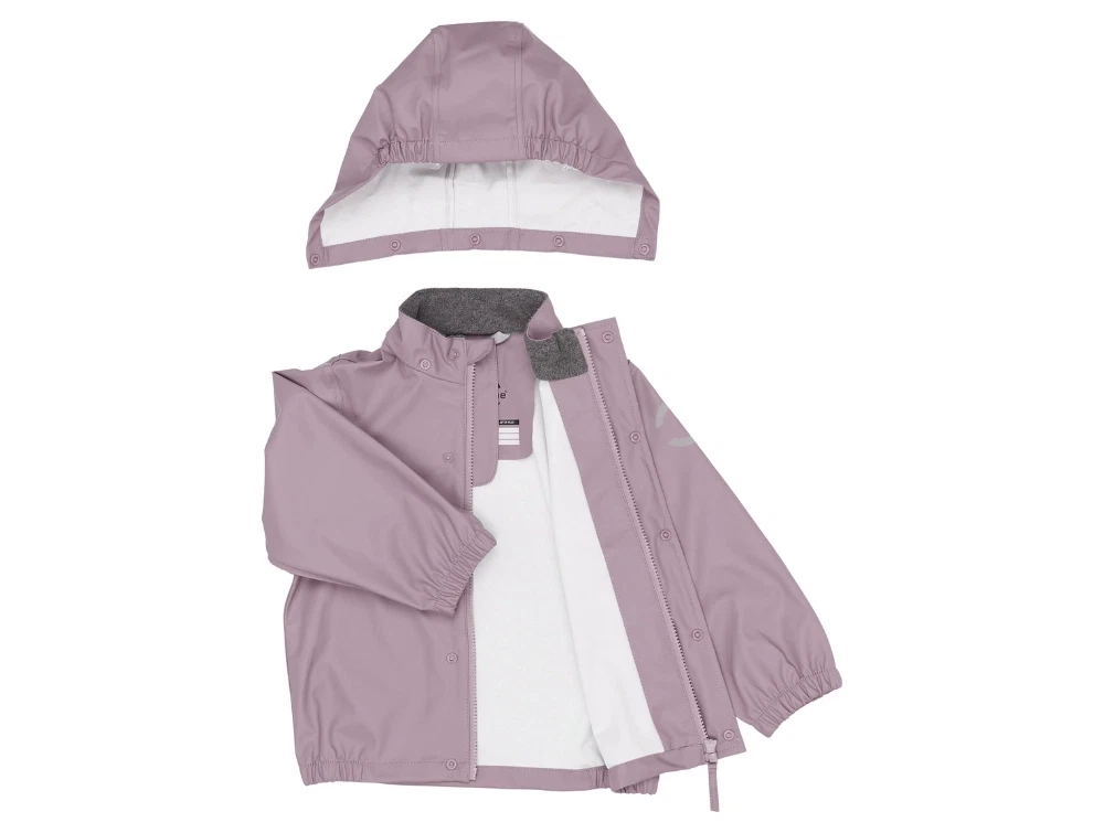 Mikk-line regnsæt i farven nirvana forfraJakke med aftagelig hætte fra Mikk-line regnsæt i farven nirvana forfraHætte på Mikk-line regnsæt i farven nirvanaRegnbukser fra Mikk-line regnsæt i farven nirvana