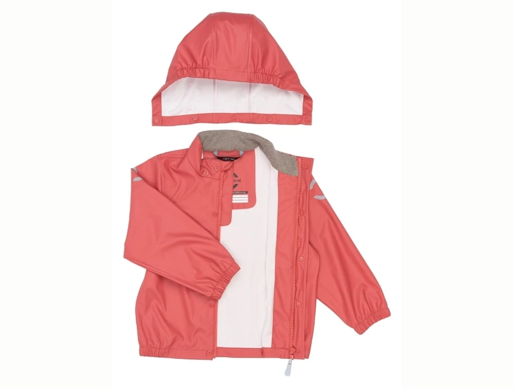 Mikk-line regnsæt cranberry bæres af barnMikk-line regnsæt cranberry uden selerMikk-line regnsæt cranberry med åben jakkeMikk-line regnsæt cranberry bukserMikk-line regnsæt cranberry fodstrop detalje
