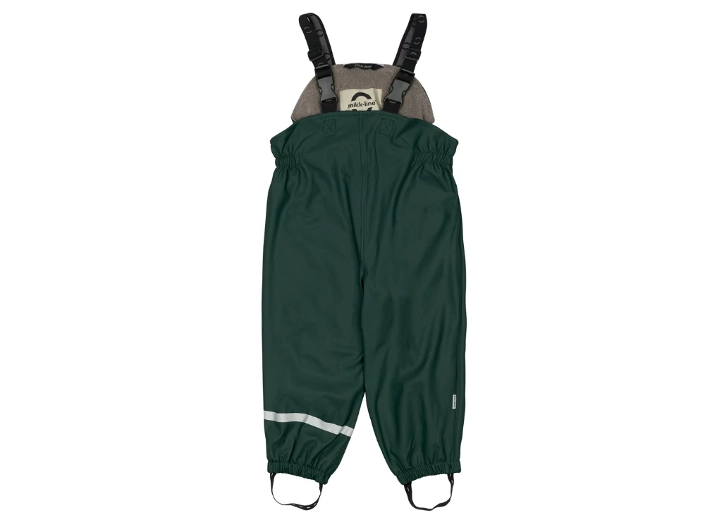 Mikk-Line regntøj i mørkegrøn med fleecefor, seler (str. 74-104) og svejsede sømme