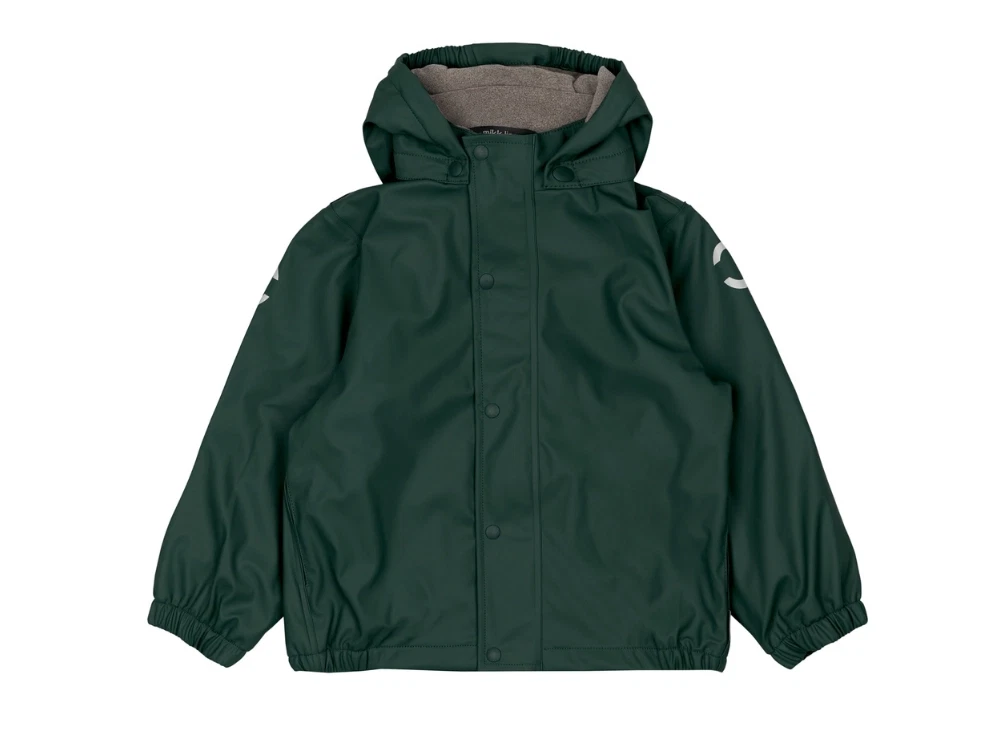 Mikk-Line regntøj i mørkegrøn nuance (darkest sprouse) med blødt fleecefor og praktiske seler på bukserne i størrelserne 74-104. Sættet er ideelt til regnfulde, kolde dage og aktiv leg udendørs.