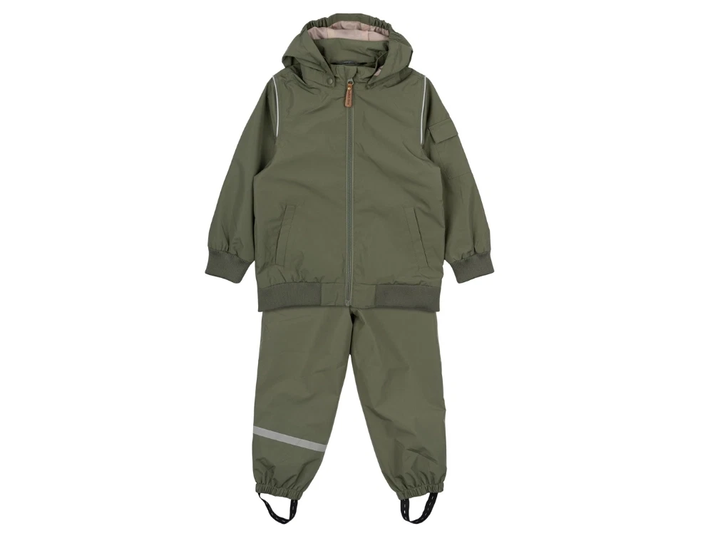 Mere information om Mikk-Line skalsæt dusty olive med refleks og aftagelig hætte