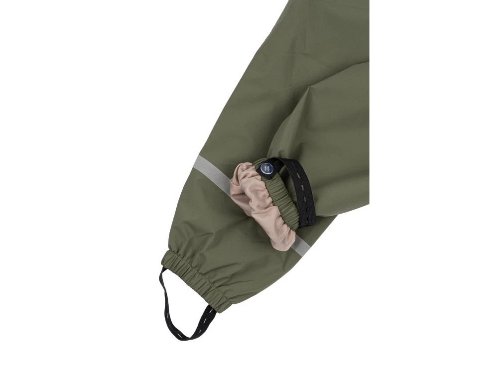 Skalsæt fra Mikk-Line i farven dusty olive med jakke og bukser  Skalbukser fra Mikk-Line i dusty olive med refleksdetalje  Elastikstrop og justerbar åbning på Mikk-Line skalbukser Skaljakke fra Mikk-Line i dusty olive set bagfra  Skaljakke fra Mikk-Line i dusty olive set forfra  Inderside af skaljakke fra Mikk-Line i dusty olive