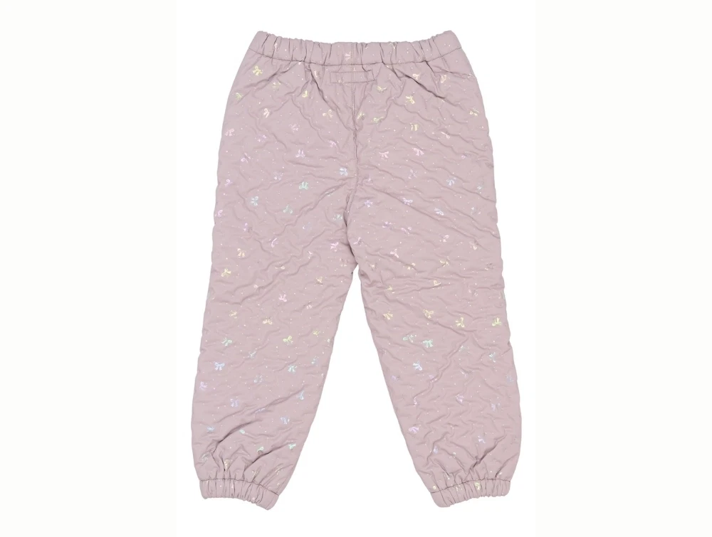 Mikk-line rosa termo frillsæt til piger med sløjfeprint set forfraMikk-line rosa termo jakke med flæser og foil-sløjferMikk-line termo jakke i rosa nuance set åben med quiltet foerMikk-line rosa termo bukser til piger med all-over sløjfeprintMikk-line rosa termo bukser set bagfra med aop-print